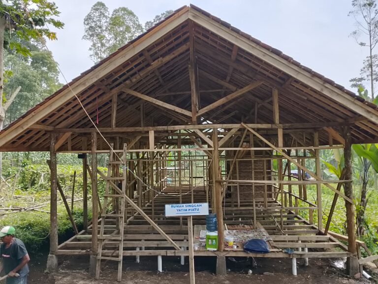 De timmermannen zijn hard aan het werk om iets moois te bouwen! Asep zorgt voor de uitvoering.